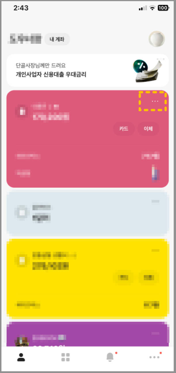 2. 통장사본 발급을 희망하는 계좌번호 우측 상단의 ' ... ' 버튼을 선택합니다.