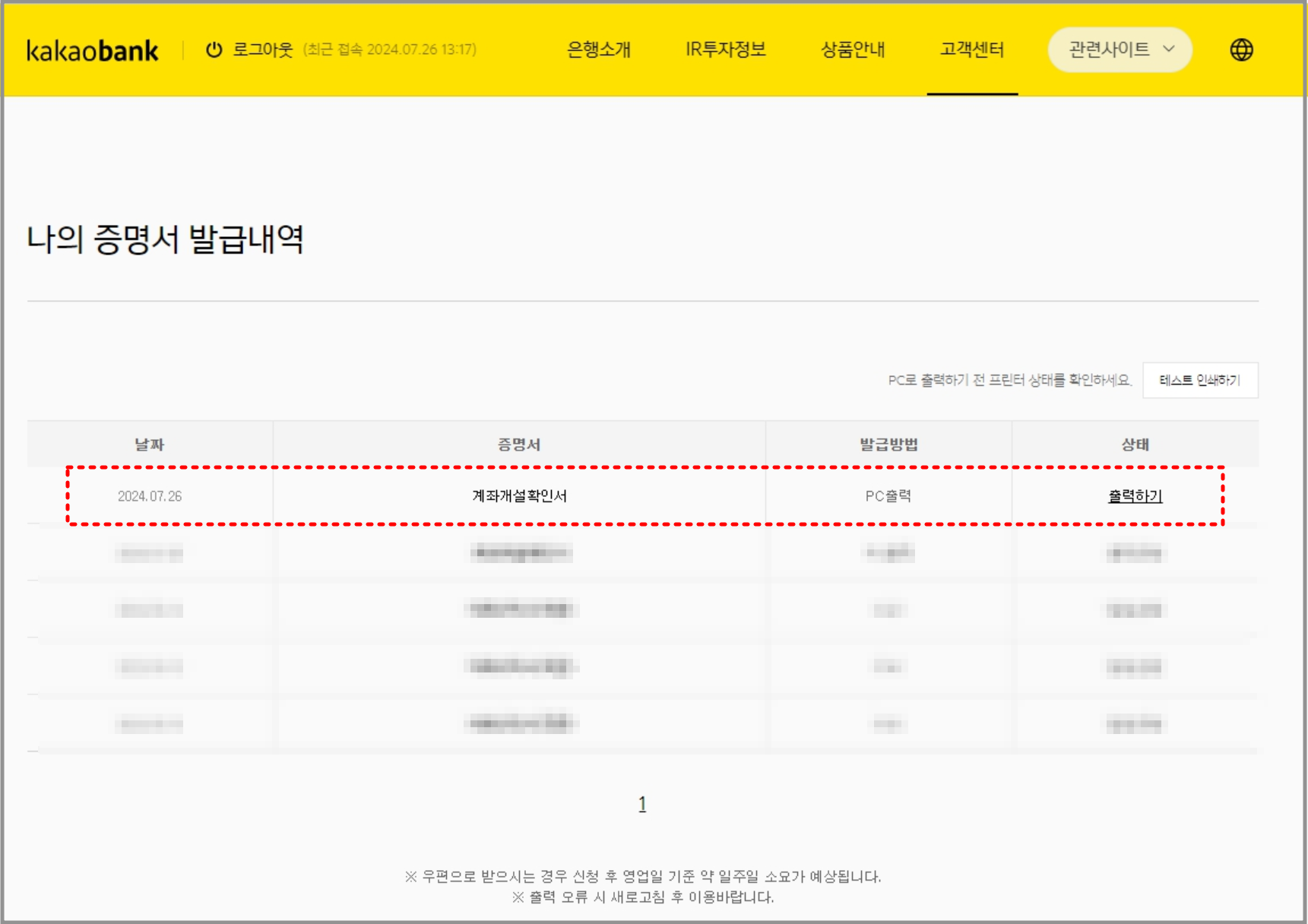 - 2단계 : 카카오뱅크 사이트에서 앱에서 신청한 증명서 출력하기