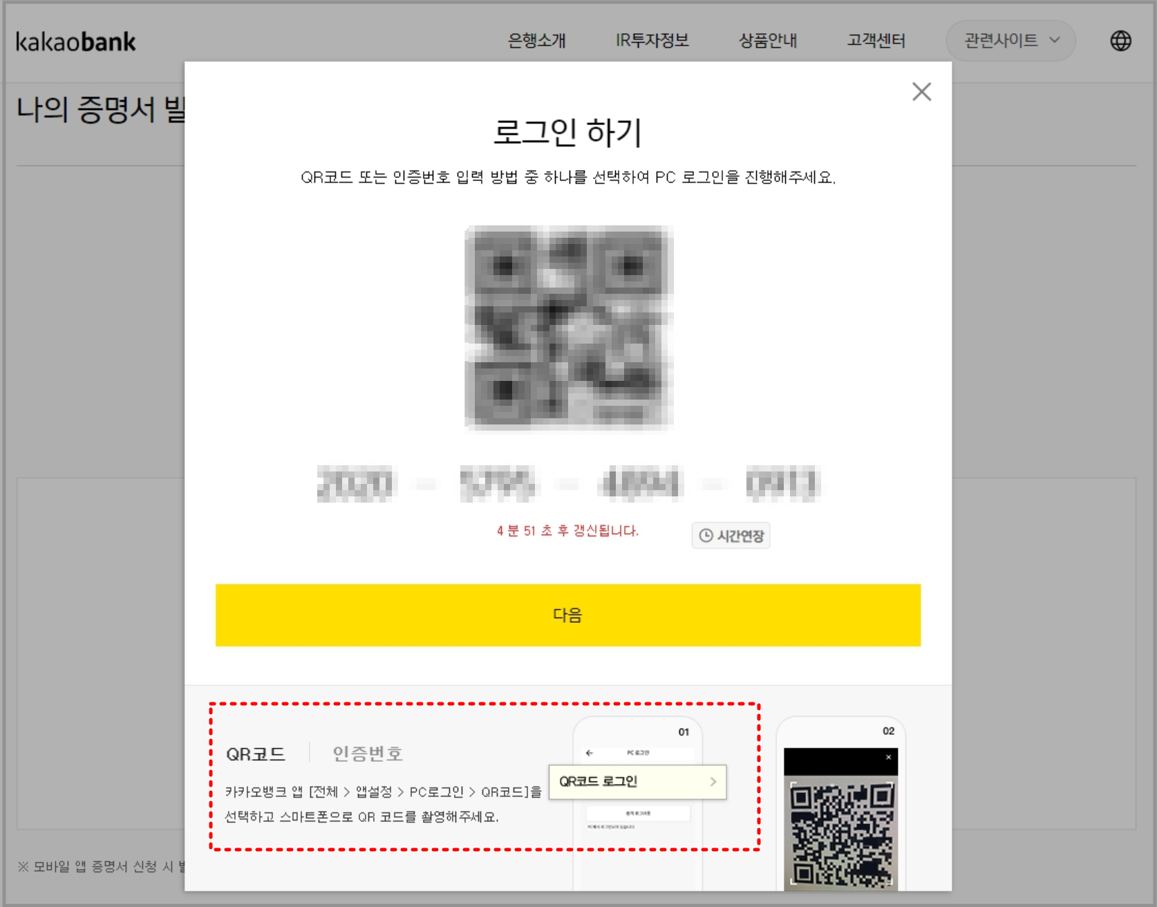 3. 로그인을 진행합니다. (QR코드 / 인증번호 중 선택)