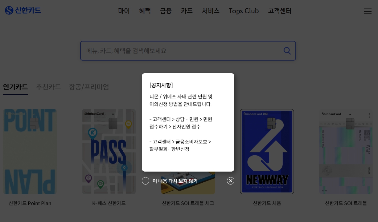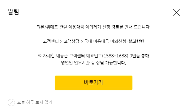 - 고객센터 > 고객상담 > 국내 이용대금 이의신청·철회항변