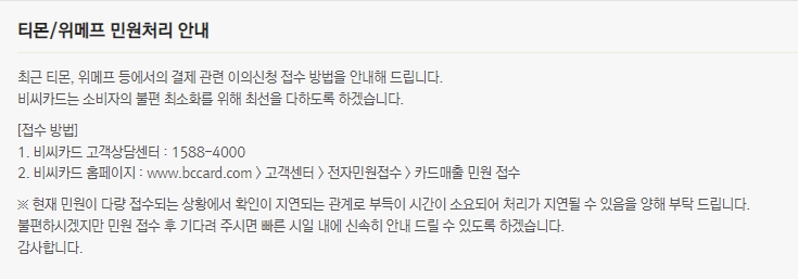 티몬, 위메프 등을 통해 결제하신 분들께서는 위 내용 참고하셔서 빠르게 취소요청을 하시기 바랍니다.