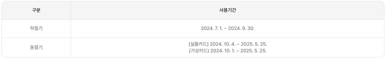 ※ 가상카드는 7월 1일부터 9월 말까지(하절기), 10월 1일부터 익년 5월 25일까지(동절기) 발행되는 발행 고지서에서 요금 차감 실시