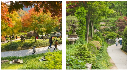 계절마다 다양한 꽃과 나무들이 피어나며, 특히 가을에는 단풍이 아름다워 많은 사람들이 찾습니다.