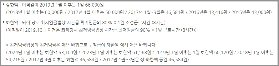 단, 구직급여는 상한액과 하한액이 아래와 같이 설정되어 있습니다.