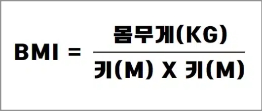 BMI는 개인의 체중(kg)을 신장(m)의 제곱으로 나눈 값으로 정의됩니다.