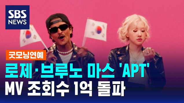 'APT.'는 발매된 지 불과 5일 만에 1억 뷰를 돌파하며, 두 아티스트의 인기를 다시 한번 입증했습니다. 뮤직비디오에서는 로제와 브루노 마스가 함께하는 화려한 퍼포먼스가 돋보이며, 그들의 스타일과 매력이 잘 드러나 있습니다.