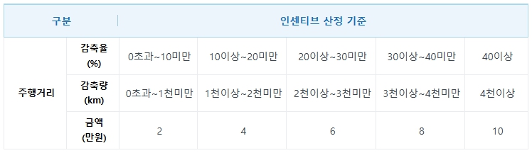 ※ 인센티브는 감축률(%) 또는 감축량(km)에 따라 최소 2만원에서 최대 10만원까지 지급됩니다.