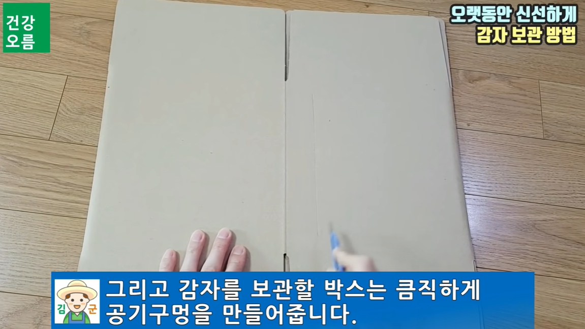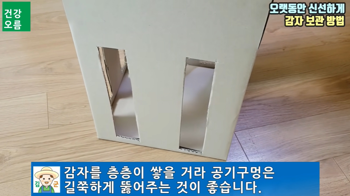 2. 감자를 보관할 박스는 큼직하게 공기구멍을 만들어 줍니다. 이때 공기구멍은 감자를 층층이 쌓을 거라 길쭉하게 뚫어주는 것이 좋습니다.