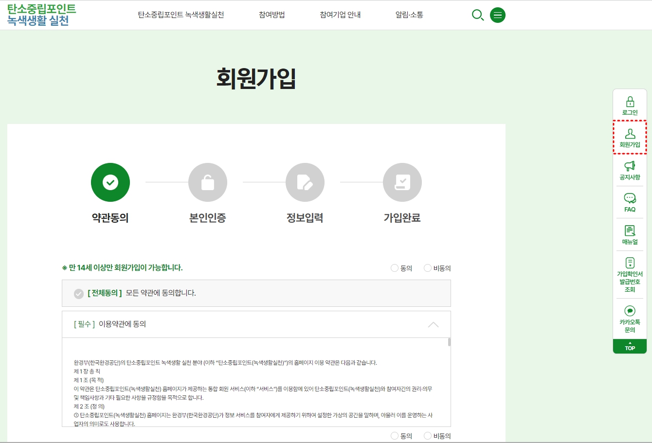 ① 탄소중립 실천포인트 홈페이지 회원가입