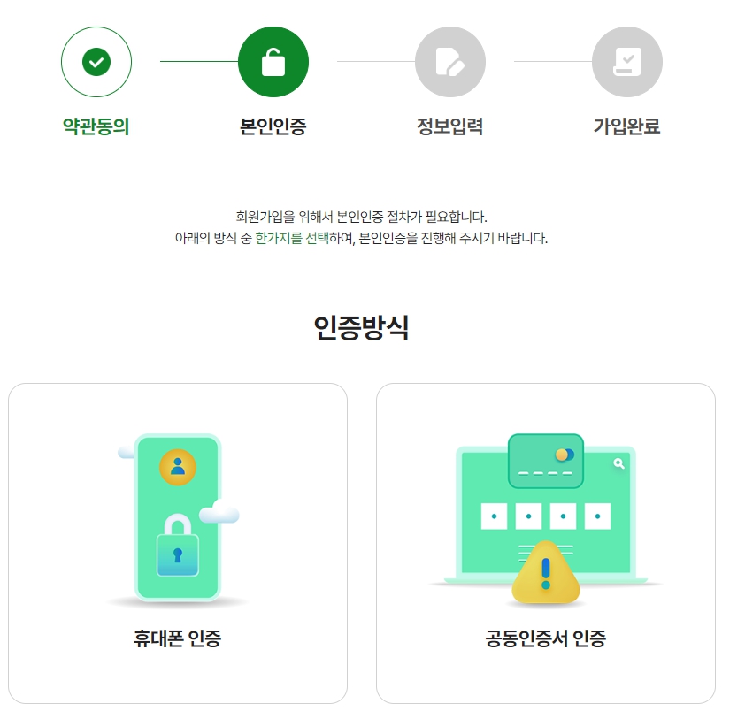약관 동의 및 본인인증 완료