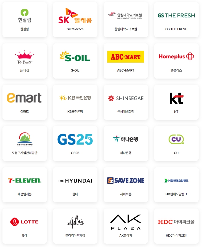 홈플러스, 이마트, CU, 스타벅스 주요 브랜드 및 업체들은 거의 다 가입이 되어 있기 때문에 전자영수증 발급만으로도 꽤 쏠쏠한 포인트를 모을 수 있습니다.