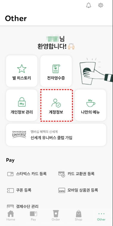 ① 스타벅스 앱 우측 하단 [Other] 클릭