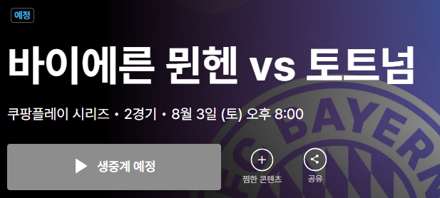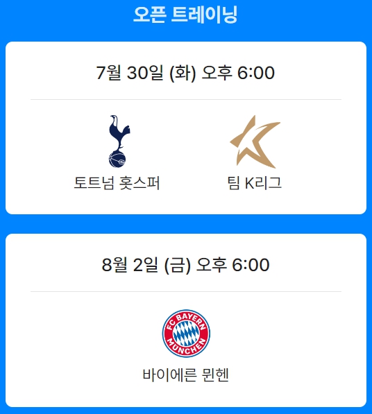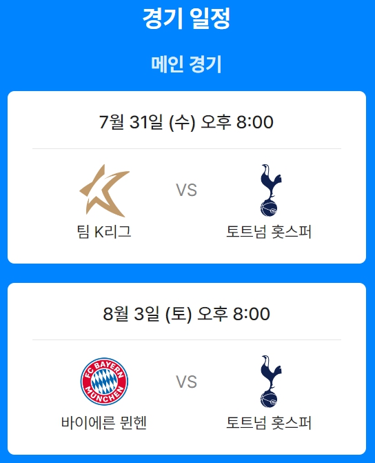 • 바이에르 뮌헨 VS 토트넘 : 8월 3일 (토) 오후 8:00
