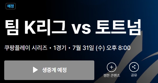 - 팀 K리그 VS 토트넘 홋스퍼 : 7월 31일 (수) 오후 8:00