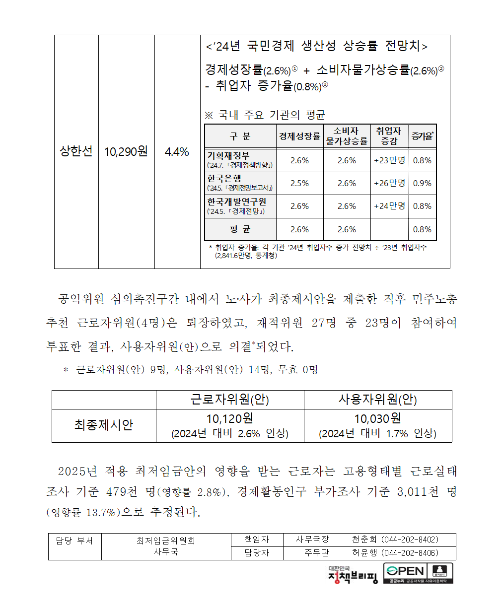 2025년 최저임금이 최저임금위원회에서 의결되었습니다.