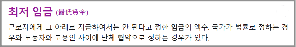 - 다음 : 노동자가 사람다운 생활을 유지하는 데 필요한 최저한도의 임금