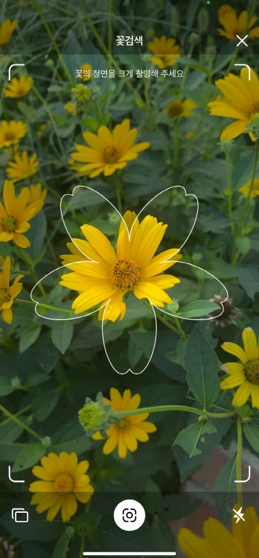 3. 이름을 알고 싶은 꽃을 이 화면에 맞춘 뒤, 사진 촬영을 하면 잠시 후 바로 검색 결과를 알려줍니다.