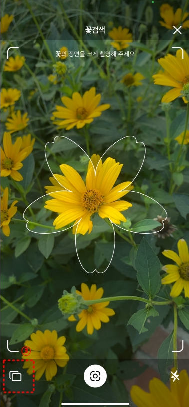 2. 렌즈가 실행되면서 화면에는 꽃 테두리가 보입니다.