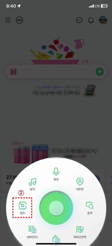 1. 네이버앱을 실행 후, 검색란 오른쪽 원형 버튼을 클릭합니다.